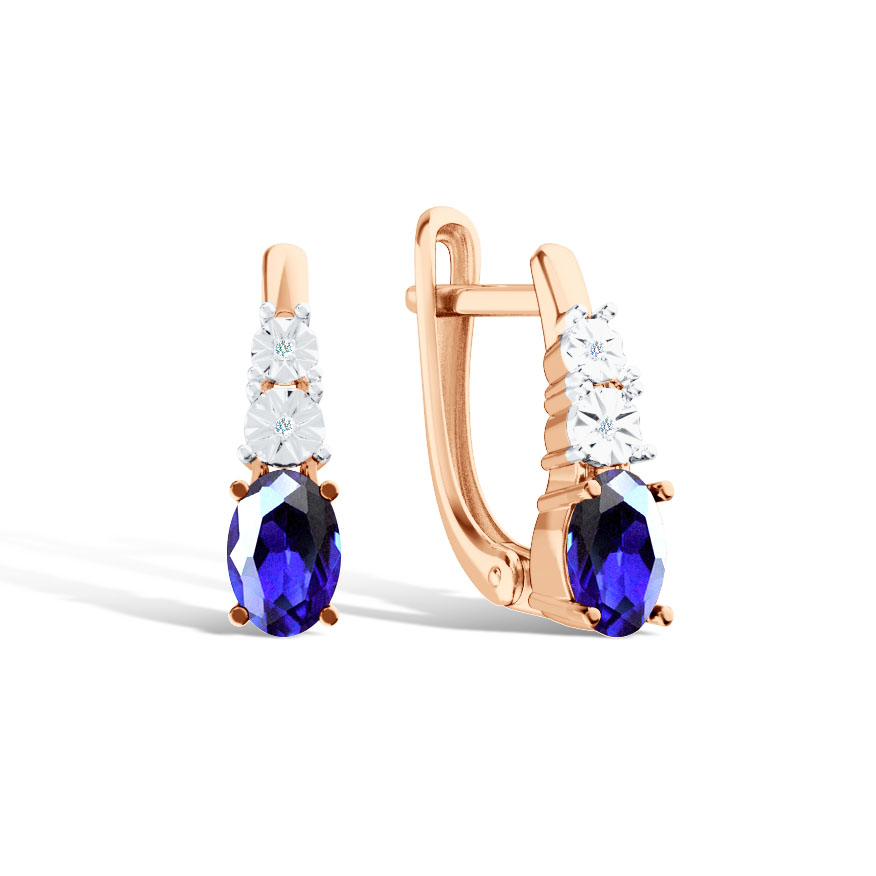 Золотые серьги с сапфиром и бриллиантами