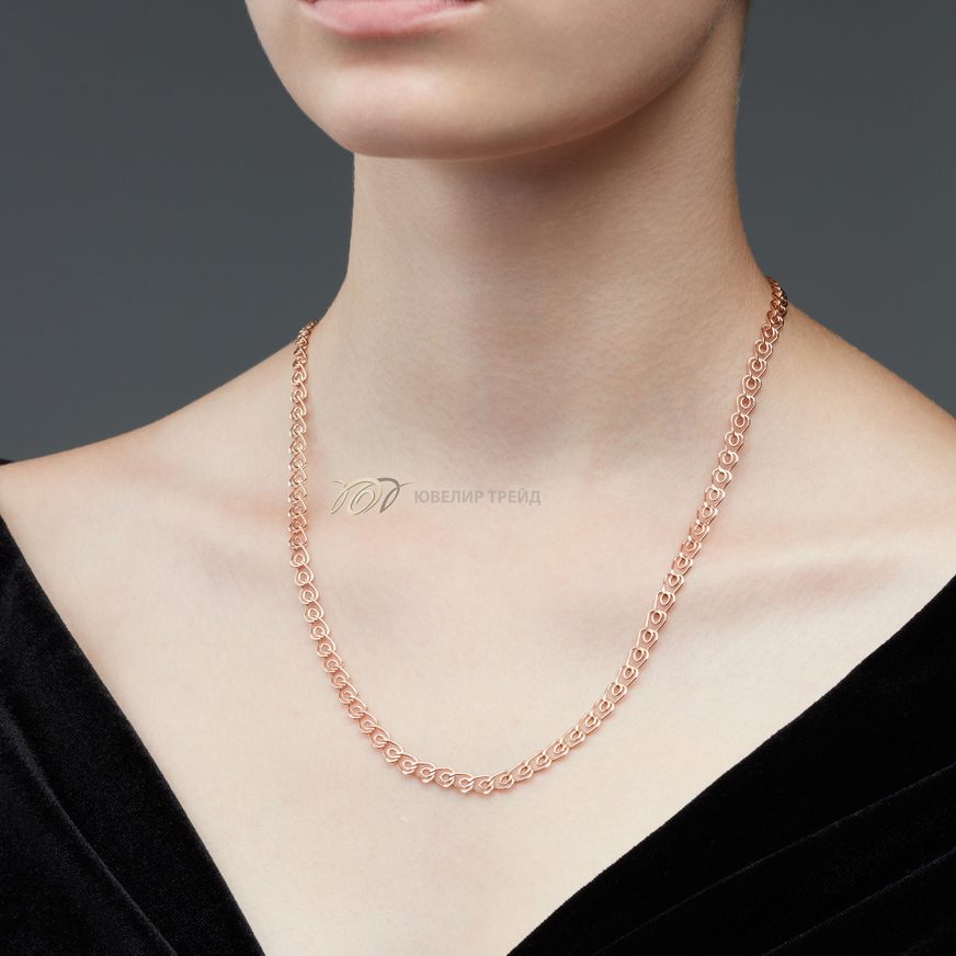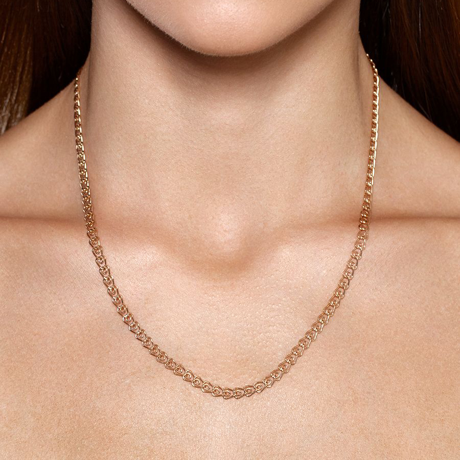 Романтичное плетение, в котором каждое звено напоминает крошечное сердечко с заостренным концом. В отличие от «лав», петля в центре элемента — одиночная, без нахлеста. Нижняя часть звена свободно вращается в разные стороны, из-за чего плетение получается гибким. «Сердце» — разновидность панцирного плетения. Его элементы расположены в одной плоскости, не выступают над поверхностью и не раздражают кожу. Цепь, состоящая из маленьких сердечек, интересно смотрится на контрастном фоне. Это нежное девичье украшение, позволяющее создать романтичный образ. В носке не доставляет дискомфорта, легко сочетается с другими ювелирными изделиями.