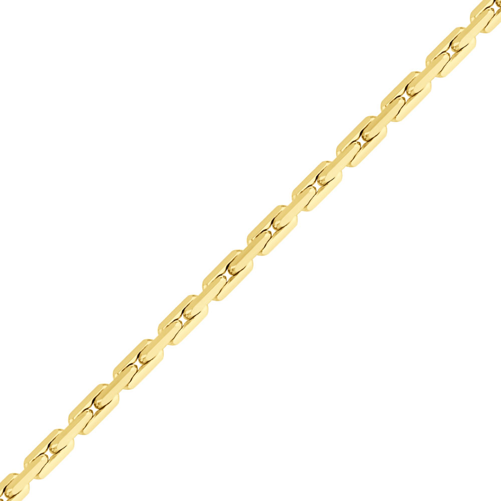 Звенья расположены под прямым углом друг к другу, поэтому цепь получается объемной. Плетение универсально, подходит и женщинам, и мужчинам. Классическая якорная цепь состоит из звеньев продолговатой формы с закругленными концами. Для усиления блеска края обрабатывают алмазной гранью. Цепь гибкая, прочная, фактурная. Ее лучше носить навыпуск — спрятать под одеждой сложно.