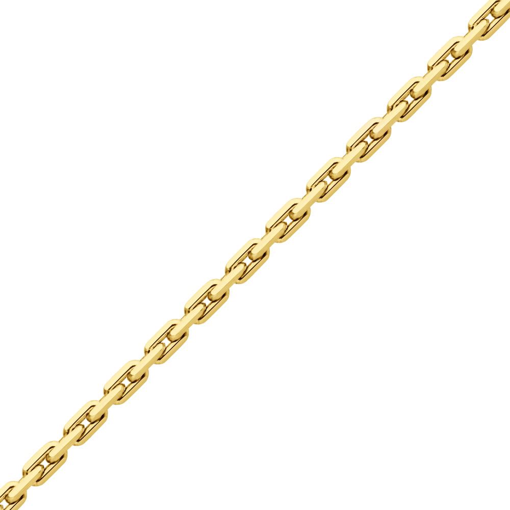 Звенья расположены под прямым углом друг к другу, поэтому цепь получается объемной. Плетение универсально, подходит и женщинам, и мужчинам. Классическая якорная цепь состоит из звеньев продолговатой формы с закругленными концами. Для усиления блеска края обрабатывают алмазной гранью. Цепь гибкая, прочная, фактурная. Ее лучше носить навыпуск — спрятать под одеждой сложно.